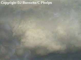 The storm was fully developed by the time we approached the northside of Herington, and it was blocking our path from going any farther to the south. I made a phone call to WeatherData and Ken Stramn mentioned that the National Weather Service had just issued a tornado warning on the storm (radar indicated). U.S. 77 would lead us into the hailcore of the storm, and punching hailcores is not in my best interest when storm chasing. Thus, we moved westward on K-4 in order to move around the storm. We took some pictures of the storm as we moved to the west toward the town of Hope (images below), but we were way out of position to see anything other than a lot of rain and lightning.