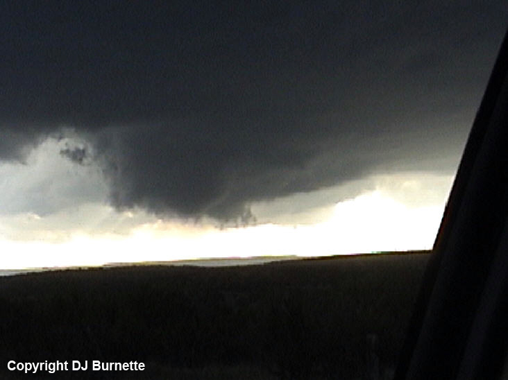 This tornado occurred for approximately 2 minutes. I then remained in the same location (about 10 miles north-northwest of Turkey), as the large wall cloud reorganized (images below; view is north-northwest of Turkey looking southwest toward Caprock State Park).