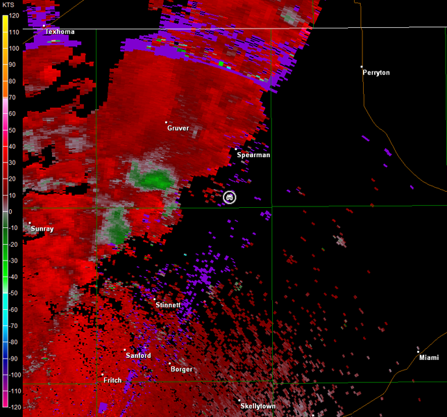Amarillo, TX Storm Relative Velocity 2200Z