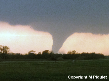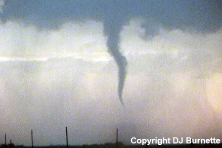 A video time-lapse of the large tornado is below (approximately 16 minutes of time edited and compressed into a little more than one minute; view is northeast of Sanford, looking southwest and then west). The tornado was already on the ground at the start of the video according to the damage survey conducted by the Dodge City National Weather Service despite the fact that the visible condensation cloud had not reached the ground yet. This tornado was officially rated EF4 based on measured winds of 165-185 mph by the Doppler On Wheels. It was on the ground for 7 miles and was 0.6 miles wide. Thanks to Casey Osburn for holding the camera steady on the tripod, while I phoned in a report to Dodge City.